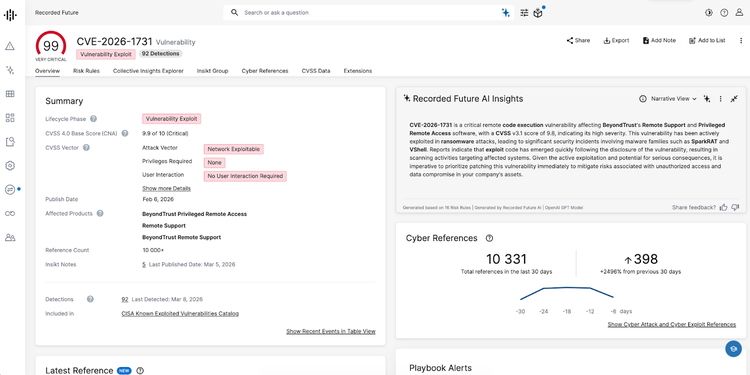 Ready to see how Recorded Future can help your team detect active exploitation, prioritize patching, and reduce attack surface risk? Explore our demo center to see these capabilities in action, or dive deeper into Insikt Group research for more threat intelligence insights.