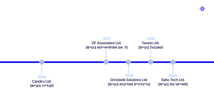 Im Laufe der Zeit hat Candiru häufig seine Büros verlegt und seine Unternehmensregistrierung umstrukturiert, um das Betriebsgeheimnis zu wahren (siehe Abbildung 1).