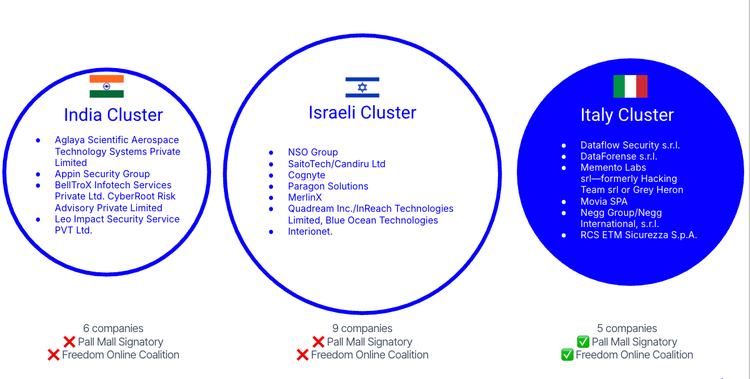 ポール・モール行動規範は、商業サイバー侵入業界の断片化を加速させる可能性が高い。行動規範に沿った規制枠組みを採用することで、署名者は責任ある使用を実証する企業とのみ協力することを約束する。この変化は監視機能の直接的な提供者だけでなく、そのベンダーや下請け業者にも影響を与え、サプライチェーンを再編することになります。その結果、業界は分裂する可能性が高く、一部の企業は CoP 市場に適応する一方で、他の企業は意図的にそれを回避し、規制対象企業と非規制対象企業の間の溝が深まることになります。これにより、スパイウェア業界の「ハブ」として機能する国も変化し、インド、イスラエル、イタリア以外の特定の市場に対応する新たな大国が形成される可能性も高くなります。