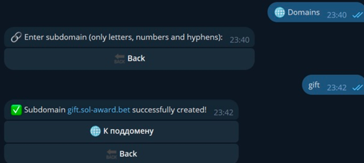 ユーザーは、ボットを使用してプライベート ドメインのサブドメインを登録することもできます。各サブドメインは完全に自律的なランディング ページとして機能します。