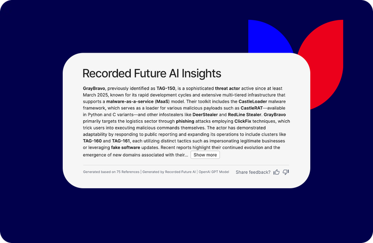 Recorded Future AI has the world's most comprehensive threat intelligence and a transparency model that makes every output verifiable.