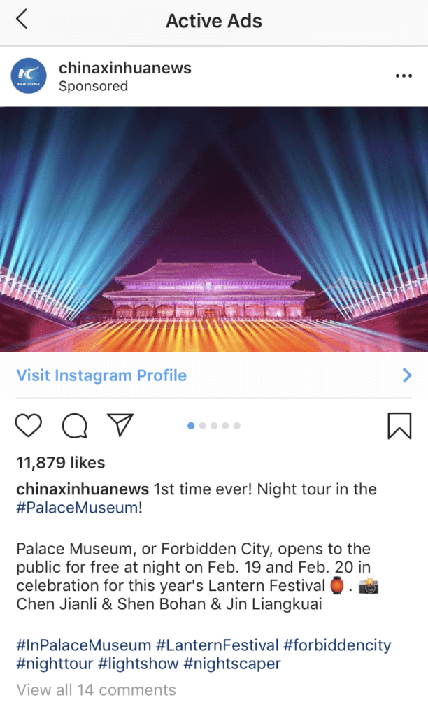 Paid advertisements on Instagram from Xinhua. (Source: Instagram)