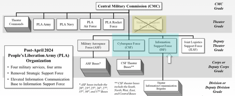 China’s April 2024 military reforms introduced three new divisions within the People’s Liberation Army (PLA), including two centered on cyber and information security: