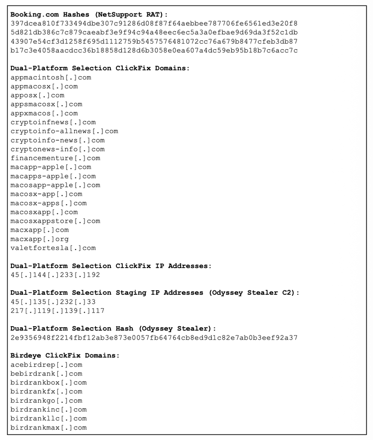 Table 5: IoCs observed in the Booking.com infection chain (Source: Recorded Future)