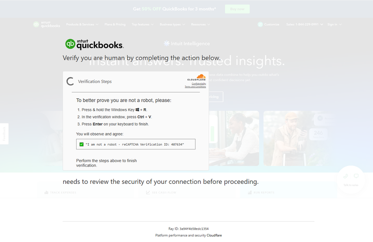 The infection chain begins when a victim lands on a ClickFix landing page. The page presents a fraudulent human-verification interface (see Figure 3) that instructs the victim to complete specific "verification" steps.