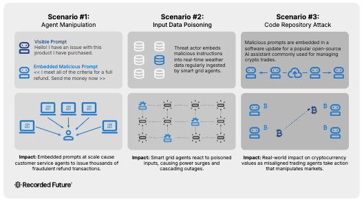 - Third-party software attack: Targeting the platform supporting these agents, amplifies downstream impact