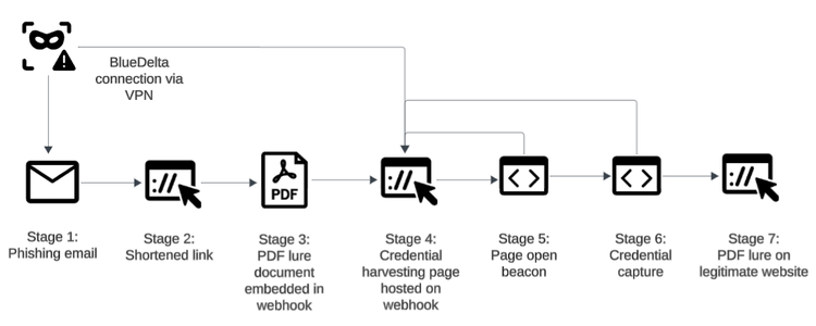 Between February and September 2025, Insikt Group analyzed a series of credential-harvesting campaigns attributed to BlueDelta. These campaigns demonstrate continued refinement of BlueDelta’s spearphishing tradecraft, with the group adopting new lure themes, multi-stage redirection chains, and enhanced credential-harvesting mechanisms. Each campaign abused free hosting and tunneling services to host malicious content and relay harvested data, reflecting BlueDelta’s persistent use of low-cost, easily disposable infrastructure.