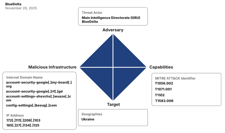 Between February and September 2025, Recorded Future’s Insikt Group identified multiple credential-harvesting campaigns conducted by BlueDelta, a Russian state-sponsored threat group associated with the Main Directorate of the General Staff of the Armed Forces of the Russian Federation (GRU). This activity represents an expansion of BlueDelta’s ongoing credential-theft operations previously detailed in Insikt Group’s December 2025 report.