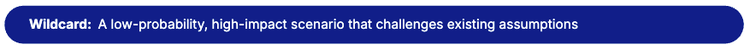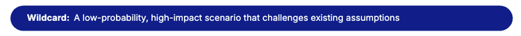 - Wildcard: A low-probability, high-impact scenario that challenges existing assumptions