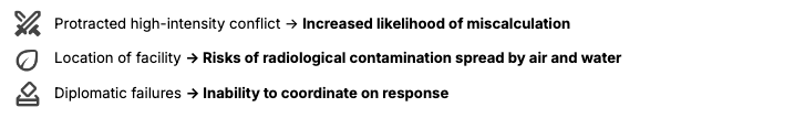 Low probability, high impact: Risk of intentional or unintended strike increases under sustained conflict.
