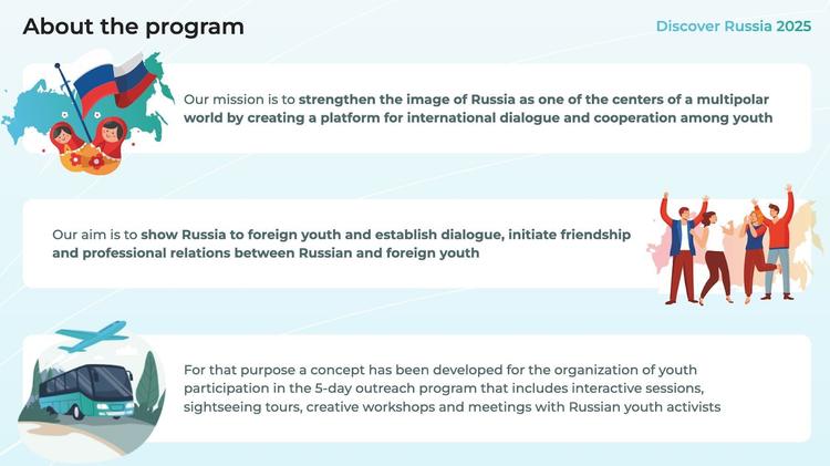 Figure 26: An “about us” page highlighting Evrazia’s “Discover Russia 2025” program