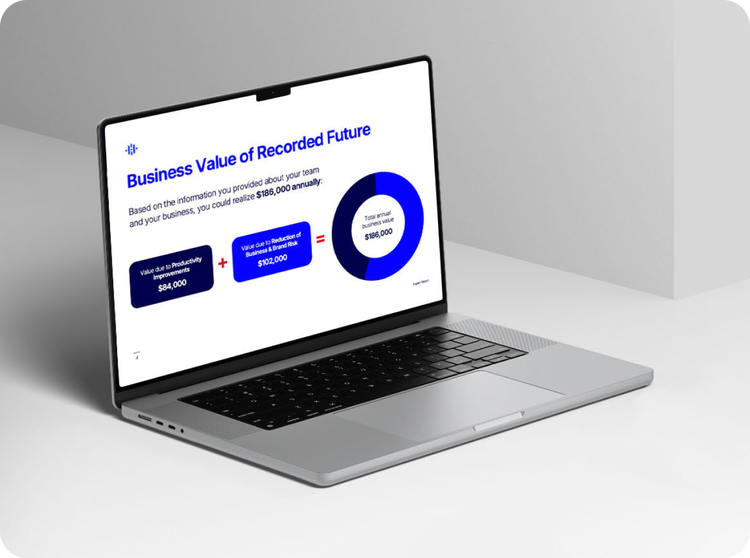 1 The foundation of our business value framework comes from the 2025 Recorded Future ROI research—a collaborative project with UserEvidence, who conducted and verified the study. Our value data evolves continuously through ongoing analysis of reputable third-party research, customer outcomes, and observable market data.